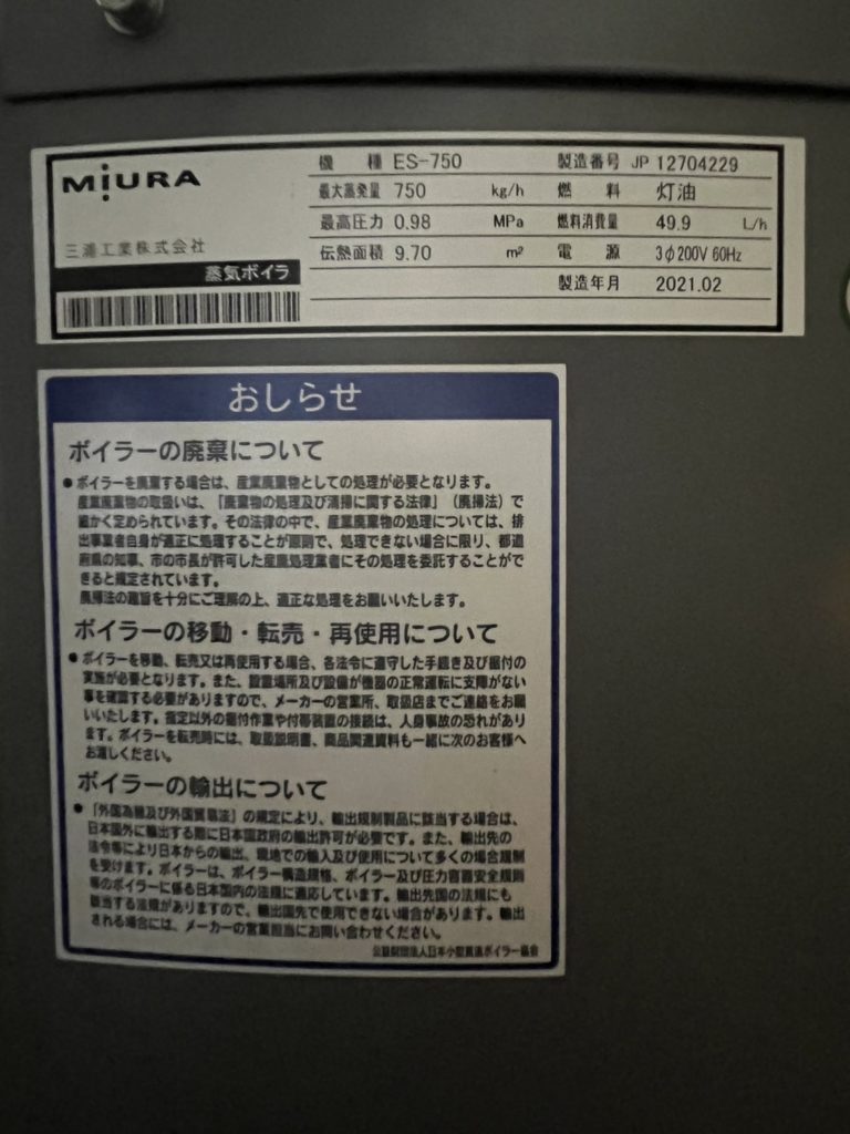 「廃業のため蒸気ボイラを廃棄したい」