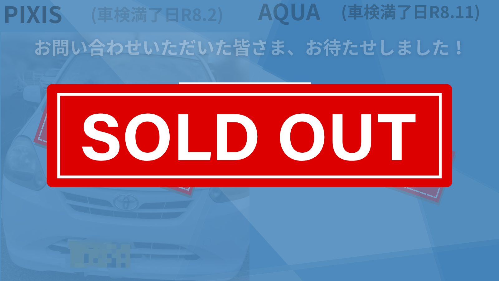 (画像追加)厳選中古車入庫! 2025 6/05 新着情報 販売情報 買取実績 2025-02-252025-06-05 こちらでご紹介したピクシス、アクア共にお譲り先が決まりました!多数のお問い合わせありがとうございました。 先日ご紹介した中古車2台の追加画像になります! トヨタ ピクシス 型式LA300A トヨタ アクア 型式NHP10 厳選中古車入庫いたしました! 車検残りたっぷりの中古車入庫しております。外観・内部共に状態の良い2台!お値段、名義変更代行などご相談ください。現物確認をご希望の方もお気軽にお問い合わせください。 トヨタ ピクシス 型式LA300A ▶走行距離:140527km ▶ 車検満了日:令和8年2月 電話で相談 メールで相談 トヨタ アクア 型式NHP10 ▶走行距離:127485km ▶ 車検満了日:令和8年11月 電話で相談 メールで相談 よかったらシェアしてね! URLをコピーしました! URLをコピーしました! 関連記事 店舗まるごと買… TOPCON HiPer S… 【ご成約】Ther… スマホケース・… 続きを読む